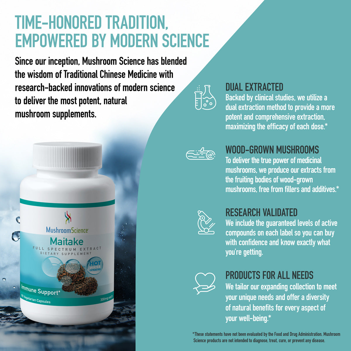 One of Japan’s most popular medicinal mushrooms, Maitake is known for its ability to support immune health and overall wellness. Our full-spectrum extract preserves the mushroom’s natural balance of beta glucans, amino acids, and minerals to provide a complete and effective daily supplement.*